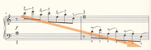 左右の手が揃って、軽やかにスケールを上がっていって、