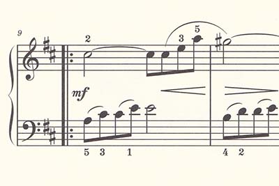 ロマン派時代の作品では、同じフレーズが出てきても同じようには弾かず、変化をつけて楽しむことが大切です。同じ音が続く場合でも、同じフレーズが出てきた場合でも、考え方は同じです。