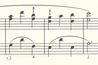 右手がメロディで、左手が伴奏という分かりやすい形で、両手とも弾くのは単音がほとんど。