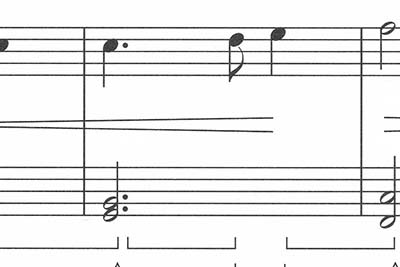 今回の課題である「非和声音を含む旋律」は、例えばここ(※上段、下段ともにト音記号です)↓
