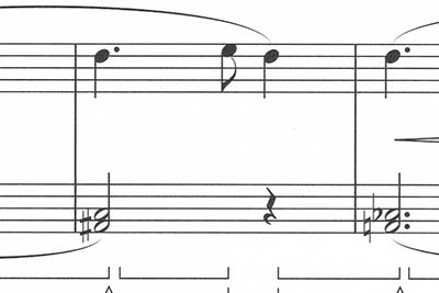 左手の離鍵が遅かったり、ペダルが早すぎたりすると、左手の重音にペダルが効いてしまう