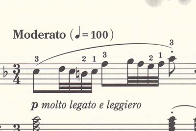 ……あくまでも、大きな流れはこの8分音符だということを意識して、急がずに32分音符のターンをコロンと弾きます。このターンは指の先だけを使ってごく、軽くひきましょう。