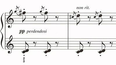 なのに、「きわめて弱く、しだいに消えるように」ですって……?そしてもちろん、指示はあくまで「消えるように」であって、音が本当に消えちゃダメなわけで。