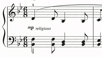 この曲には、「“religioso”(レリジオーソ):敬虔に、祈るような気持ちで」という指示がありまして↓