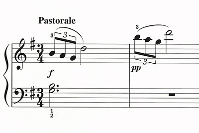 「オルガン・ピアノ」で初めて、3連符が登場します。