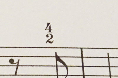 さらに、その右下にある「2」という文字……譜表の線上に書いてあったら見づらいよ!